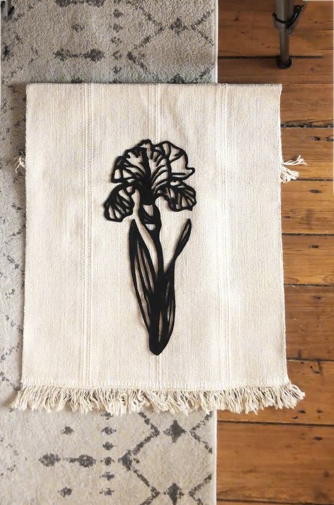 First I looked around for a nice silhouette of the flower. I found this Iris Flower Digital Download from Etsy and purchased the file for $1.70. This would be what I would cut out of black felt material. If you’re looking for a different flower, try searching “silhouette” or “line drawing”, look for simple shapes that would be easy to cut out.