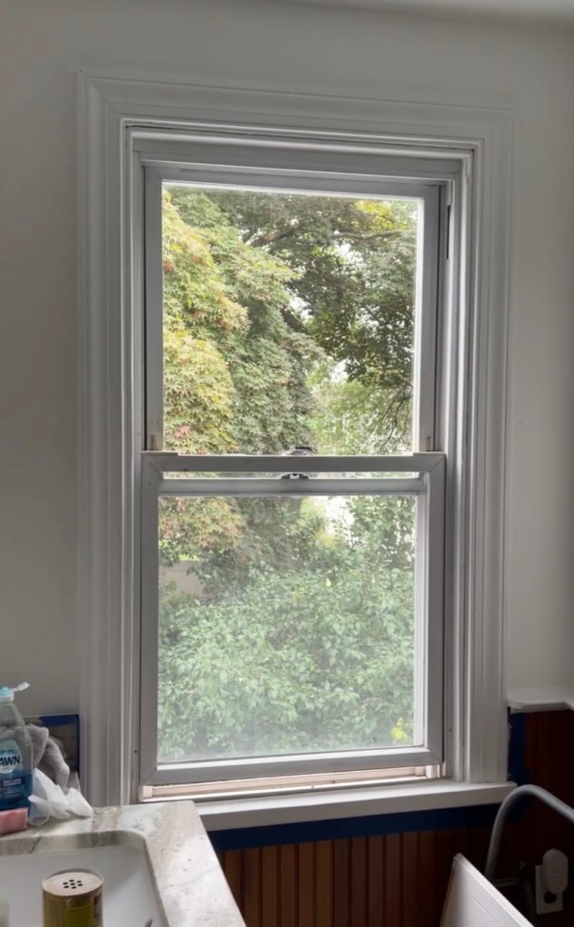 The old lace windows treatments layered over white indoor shutters provided adequate privacy but was not the vibe we were going for. They were also more difficult to keep clean. We opted to remove the cluttered blinds and opt for an easy-to-install window film.