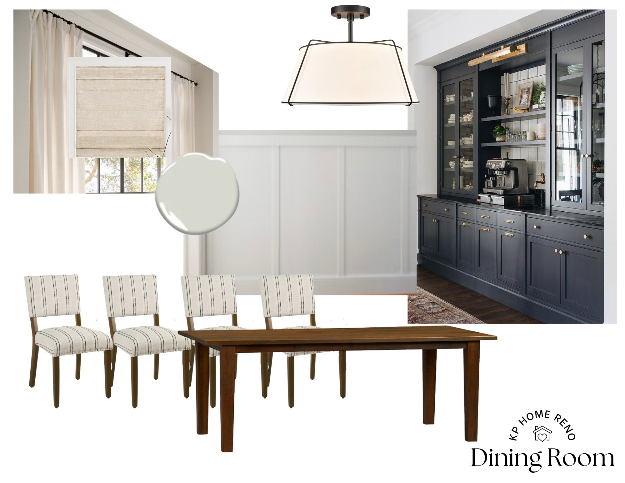With the second floor still being a construction zone and the living room area getting repainted, all the furniture that normally goes in those rooms got pushed into our dining room. So we haven’t had a functional dining area in a long time. I’d love to eventually build a statement built-in bookcase on the wall adjacent to the kitchen. The floor is little wonky there so it will help hide some imperfections. The room is open to the living room so I want to be careful making sure the two spaces flow together nicely.