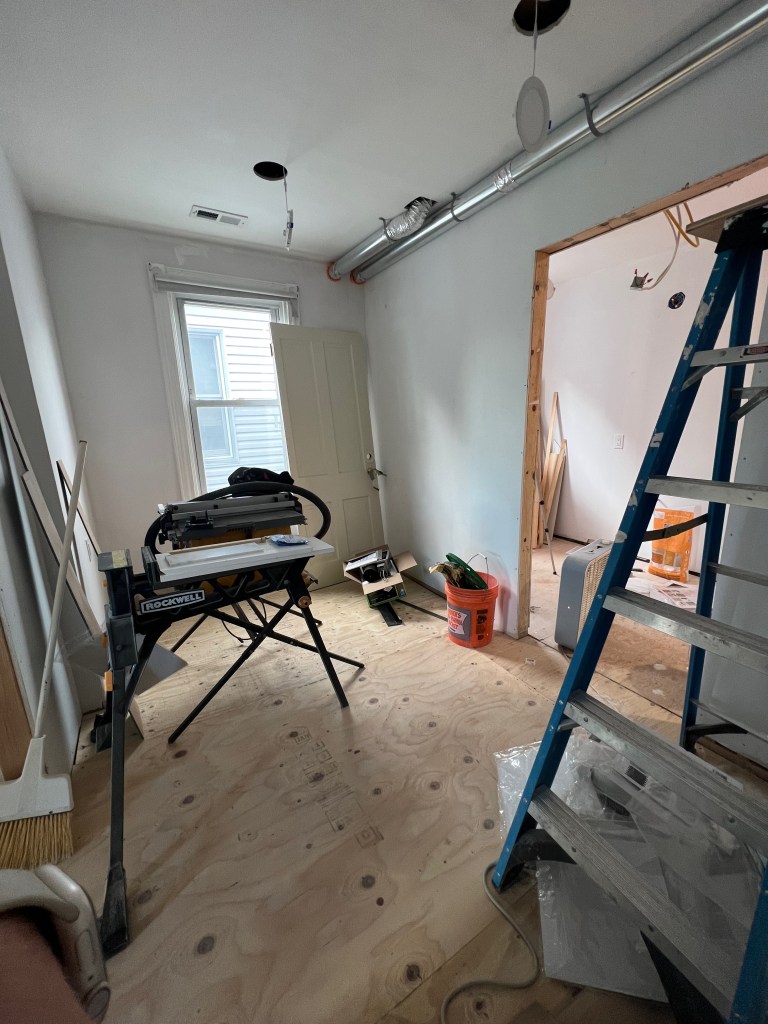 Our primary bedroom has been quite a chaotic space lately, serving as a temporary storage area for tools and materials while we work on renovating the primary bathroom, closet, and laundry rooms. However, we’re excited about the progress we’ve made, and our hope is that once we finish tiling the bathroom, we can finally move our king bed into the bedroom and create a more comfortable living space.