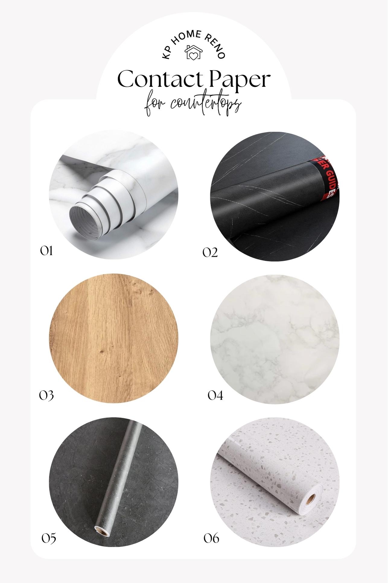 This is the exact paper I chose. If I were to do this project again I may try to find a roll that is a little wider so it would completely cover the back piece as well as the main countertop. Mine was exactly the width, so I had to make several additional cuts to cover the front edge and the back piece.